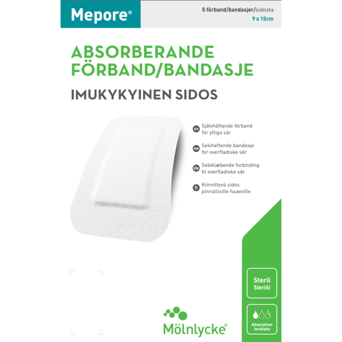 Mepore® skonsamma, säkra och hållbara självhäftande förband. Mepores absorptionsegenskaper gör förbandet till ett lämpligt val vid behandling av lätt till måttligt vätskande sår.
